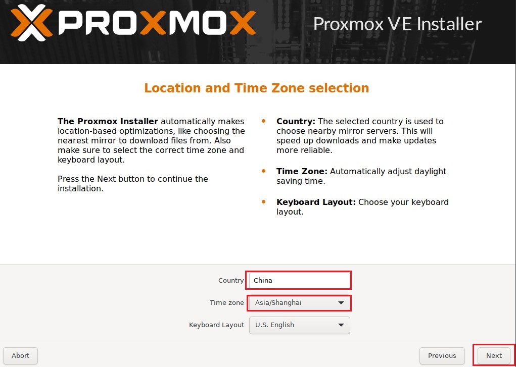 (4)下一步到时区选择,比较重要,选择你所在的时区,国家选China,时区选上海,键盘默认,然后点击Next.