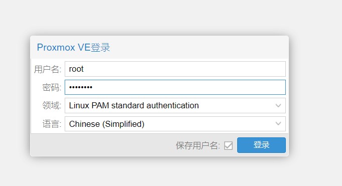(3)弹出登录窗口,最后一栏语言栏选择中文,输入用户名root及设置的密码,点击登录。