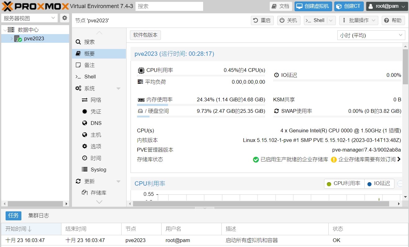 下一个教程将会完成:PVE机器硬件CPU-硬盘-主板的温度-频率-使用时间等相关概要信息显示;以及PVE版本的升级,和拒绝更新的设置,下次来。
