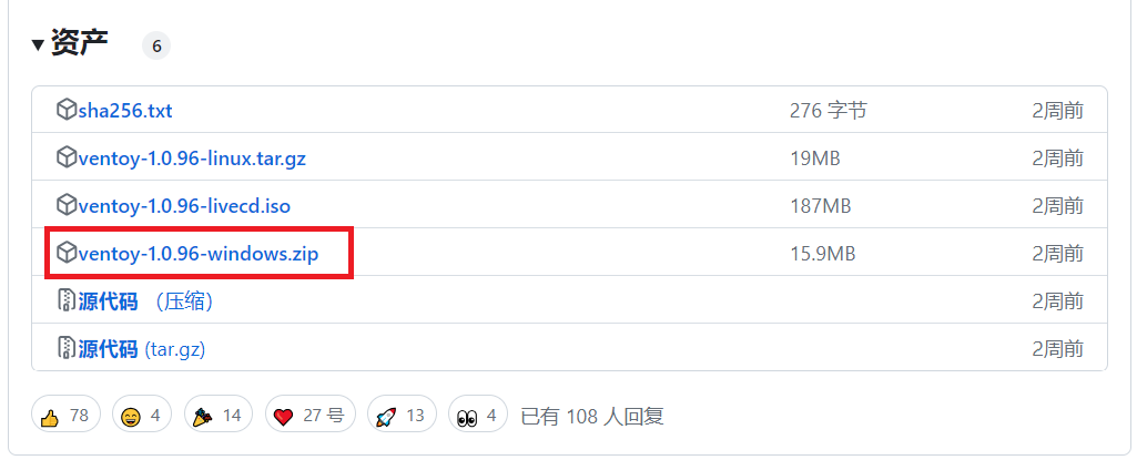 (2)再下载Ventoy 它是一款开源工具,用于为 ISO/WIM/IMG/VHD(x)/EFI 文件制作可启动的 U 盘驱动器。点击下载地址,下载最新版本的windows版本。