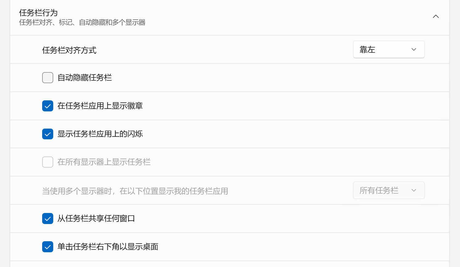 任务栏开始菜单居左,这么多年的习惯,win11居然改居中,强迫症那叫一个难受。