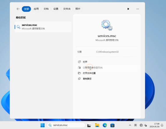 (1)按键盘上的win+R按键或者直接在任务栏搜索框输入:services.msc选择以管理员账号打开。