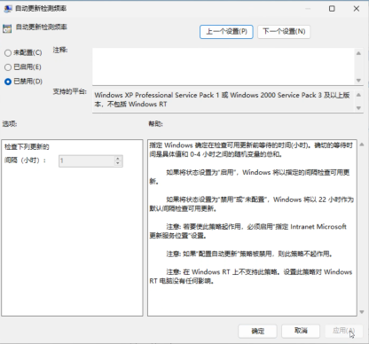 在管理win UPdate 和管理最终用户体验两项里的自动更新检测频率和配置自动更新 全部选择 已禁用。